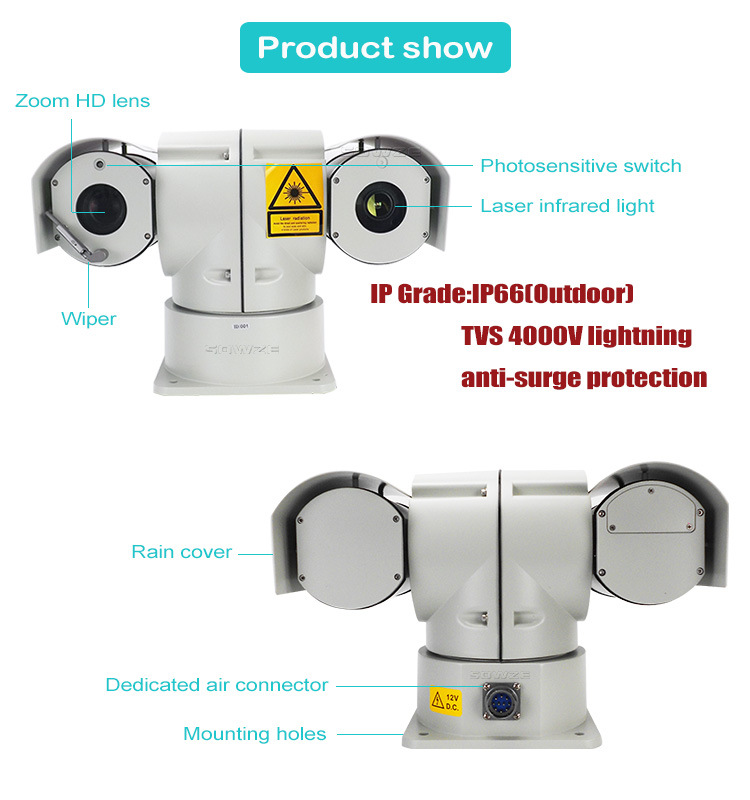 云台采用全天候环境设计,带遮阳罩,带雨刷;