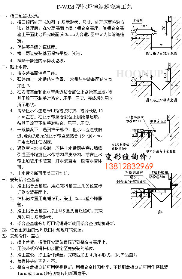 金属盖板型楼地面伸缩缝 变形缝平面型号:F-WJM相对应的转角(L形)FJM@产品材质:6063阳极氧化铝合金 @面板选用:铝合金、不锈钢板或黄铜。 @参考图集:建筑变形缝国家标准04CJ01-3 第7页节点2