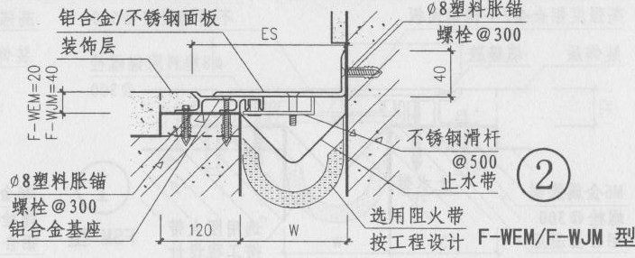 地坪变形缝F-WJM采用中心滑杆(1米2个)可确保变形缝装置变位时仍能保持中心及原有位置,能确保50%位移量,同时中心盖板自定中心,板与板之间的接合平整,美观大方。 地坪变形缝FOM的中心盖板可选用铝合金、不锈钢板或黄铜,通常使用铝合金盖板的居多,地坪变形缝FM适用缝宽50-500mm。