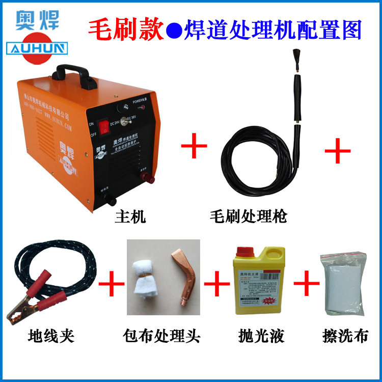 出厂配置:主机1台,毛刷清洗枪1套,包布铜头1个,奥焊抛光液1瓶,处理布2包。