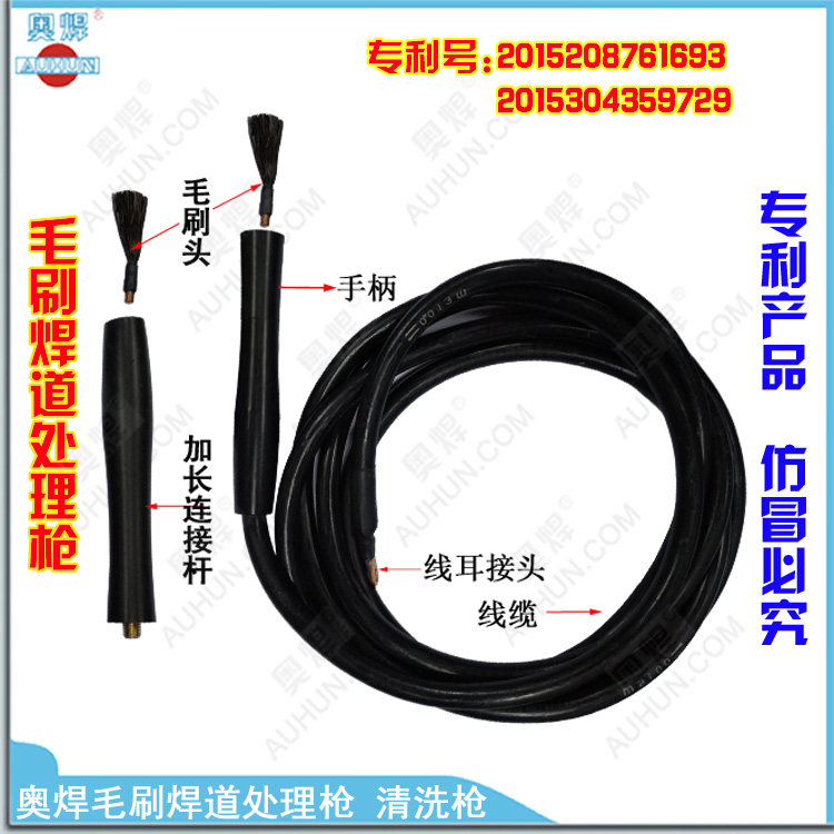 毛刷自动处理枪或叫毛刷清洗枪、毛刷清洗头、毛刷抛光头、毛笔式处理枪,专配奥焊公司生产的焊道处理机使用,最新专利保护产品(盗仿必究!)。