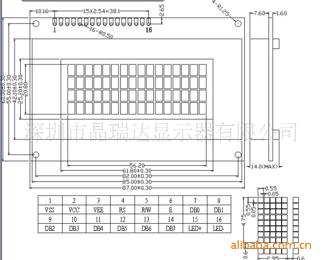 厂家热销内置字符型液晶屏 16x4字符点阵模组 并口5v