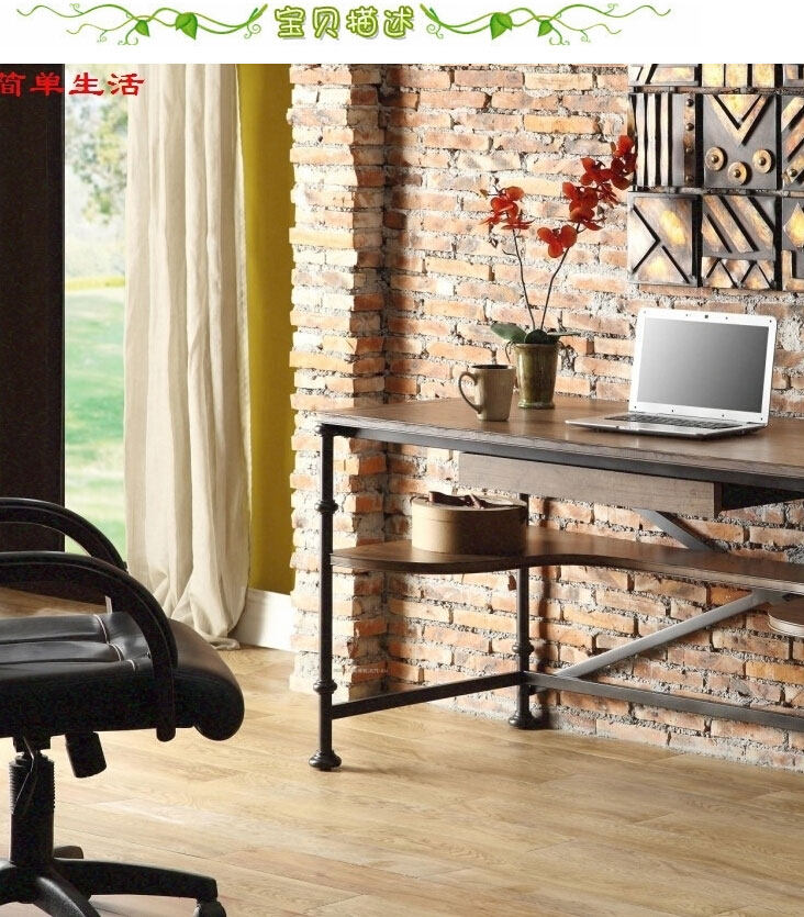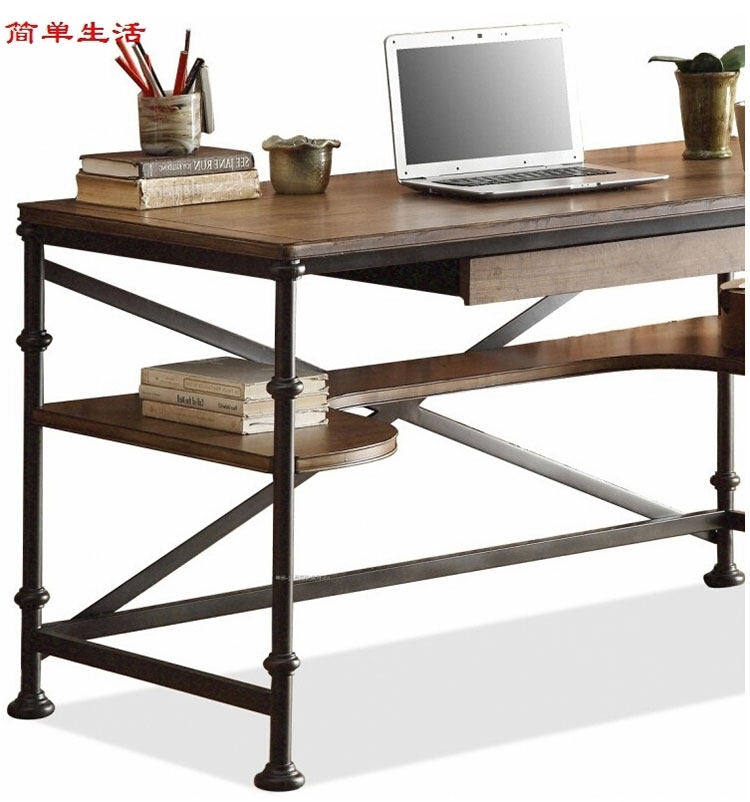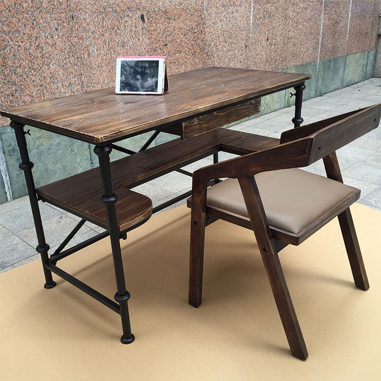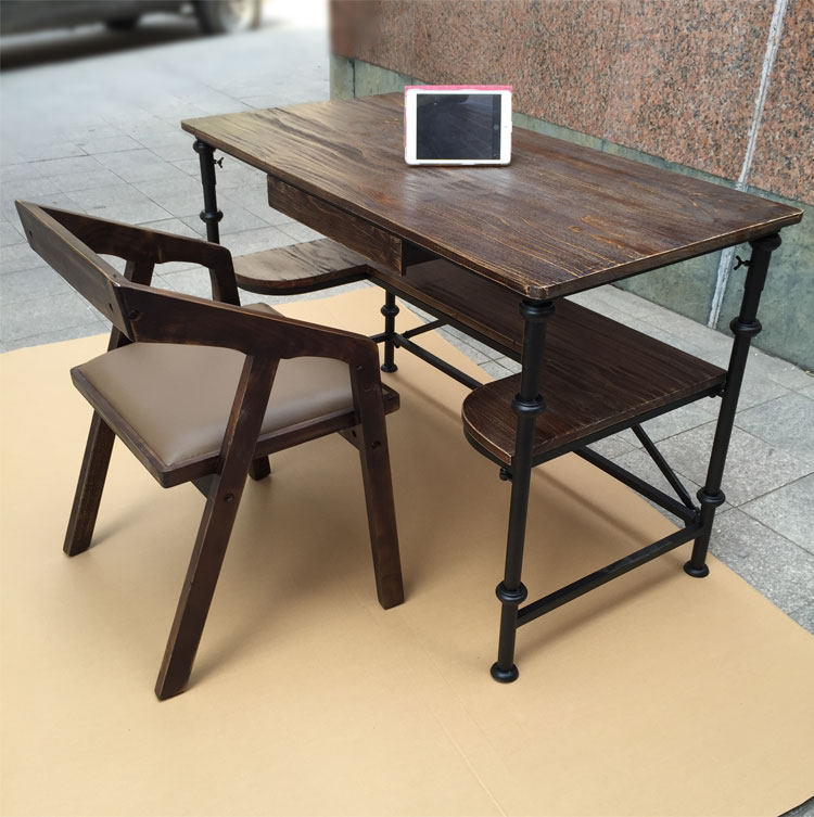 陕西创客咖啡厅办公家具厂 西安铁艺个性电脑桌 深圳简约实木书桌