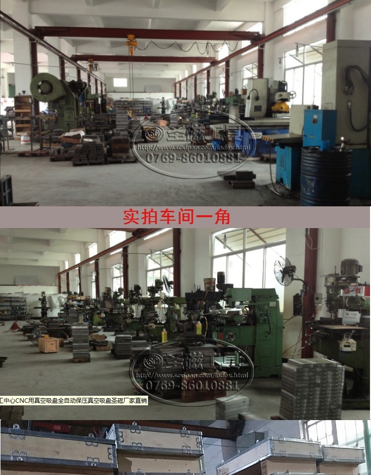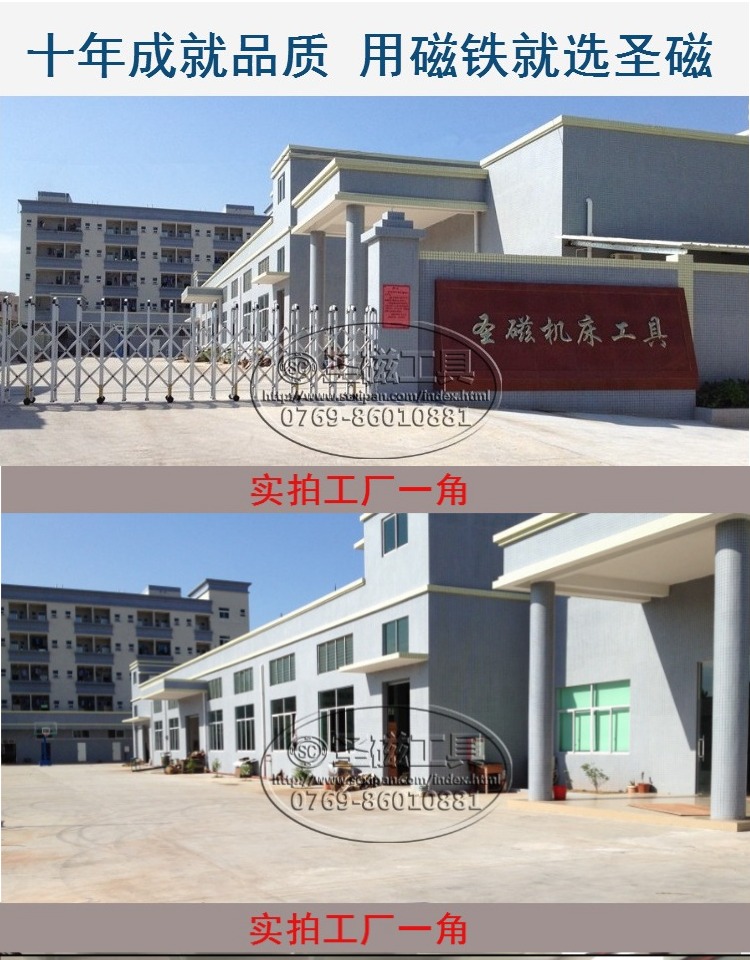 东莞市茶山圣磁机床零件厂系华南地区历史最长规模最大的机床附件磁性工具生产制造批发厂商,以精湛的技术和创新的理念扎 根制造业发达的珠三角十五年之久,深受业内好评。公司拥有龙门铣床、龙门磨床等、电脑锣等大型设备数十台,专业攻克超大型、超强力磁力吸盘。圣磁人做到了你无我有,你有我专,磁性系列产品,华南市场占有率达60%以上,并为多家大型实力批发商提供代工服务。 我司主要生产磨床电磁吸盘,永磁吸盘,铣削强力磁盘,CNC超大电控永磁吸盘,永磁起重器,龙门铣强力吸盘,电脑锣强力永磁吸盘,真空吸盘,雕刻机细纹吸盘,火花机吸盘,线切割吸盘,可倾回旋吸盘,双倾永磁吸盘,一体正弦磁台,弯弓正弦磁台,钨钢磁盘,双面磁盘,直角磁台,导磁块,法兰,虎钳,磨床滚针滚珠,火花机电极头,砂轮修整器,磨针机,块规,冲子成型器,磨床,铣床配件等产品。 我们提供优质的产品,最低的批发价,热忱欢迎全国广大客户,经销商,代理商来电来访洽谈。 我公司愿以可靠的技术,全方位的售后服务,实惠的价格,满意的交货期,与广大客户竭诚合作,互惠互利,共同开拓美好的明天!