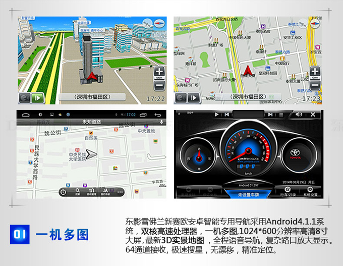| 分辨率: | 1024*600像素,内置LED光源显像 | 导航内存: | 双核高速处理器 |