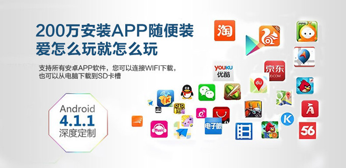 | 处理器: | 高性能普瑞玛双核1024hz处理器 | 操作系统: | Android 4.1.1系统 |