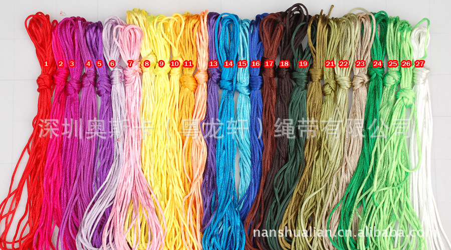 中国结韩国丝绳主要适用于穿木珠、手饰、吊饰、服装,鞋材、鞋带、礼品、箱包等等,本厂拥有十几台先进设备腊机机械,达到每天能生产千斤左右,技术到家,达到产品优质质量,腊绳任何规格、颜色齐全,可依据客户色样,可来样板订做。兼备技术精湛、价格优惠、质量上乘,从而赢得了广大客户的好评,产品远销世界各地。