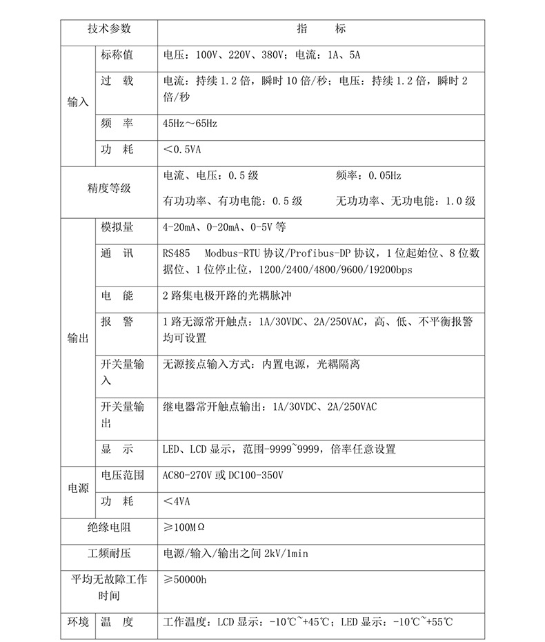 该系列仪表采用交流采样技术,能分别测量电网中的电流、电压、功率、功率因数和电能等参数。可带RS485通讯接口、模拟量数据转换、开关量输入/输出等功能,实现电力参数、电气元件工作状态的远程传输,便于后台监控系统集中检测。