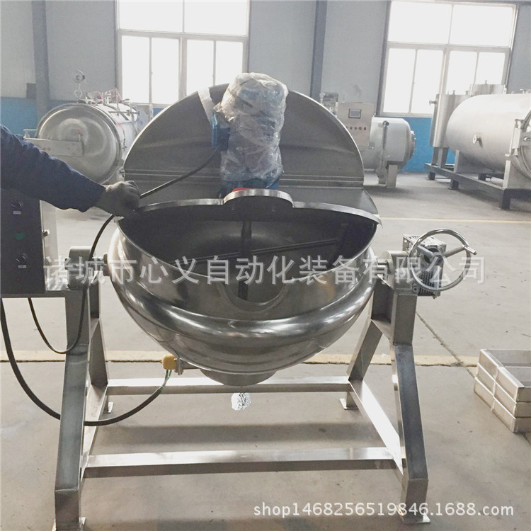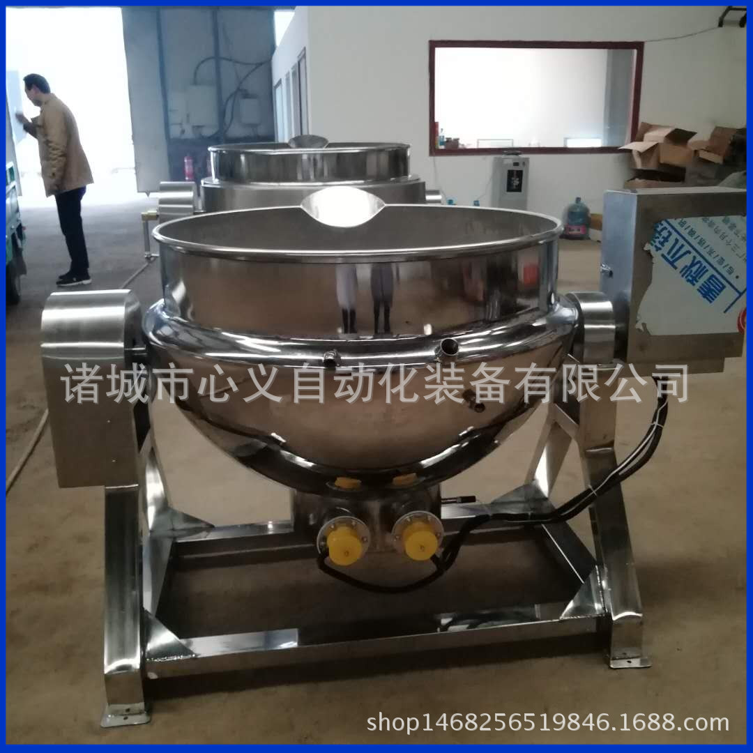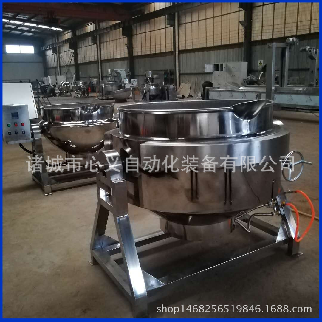 心义自动化装备有限公司生产及研发各种型号的食品级不锈钢夹层锅(简称夹层锅),其系列产品有:蒸汽夹层锅、天燃气夹层锅(灶盘或)、导热油夹层锅、灶盘夹层锅、固定式夹层锅、可倾式夹层锅、变频可调式夹层锅、煮肉夹层锅、炒菜夹层锅、肉夹层锅、搅拌式夹层锅、月饼馅料搅拌专用夹层锅等。可用于煮肉、熬阿胶炒菜、煮饭、熬粥、熬汤、熬糖、炒盐化胶、煮水饺、炒馅料(比如豆沙馅、果酱、莲蓉馅、月饼馅、绿豆馅等),煮笋干,煮卤制品(比如豆腐干、肉制品、花生、毛豆等),卤肉制品(比如鸡爪,鸡翅,卤蛋,鸭爪,鸭脖,猪耳朵、猪皮等),酱油等食品行业,也可用于型餐厅、机关单位、工矿企业、大学院校、酒店、餐厅等熬汤烧菜、炖肉、烧水、煮水饺、熬粥等。