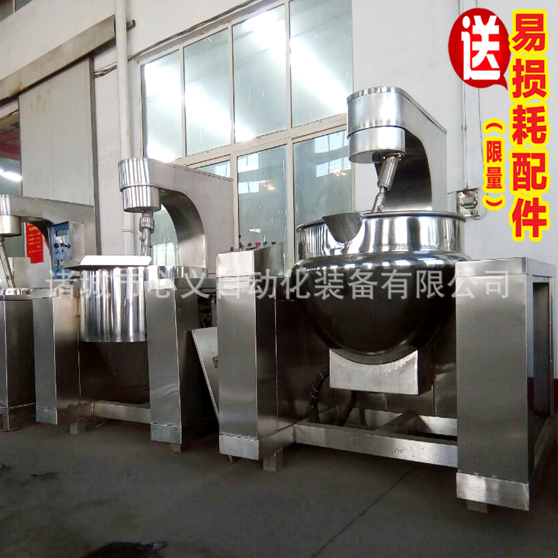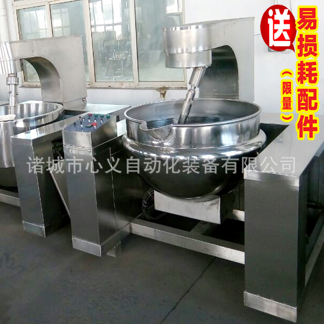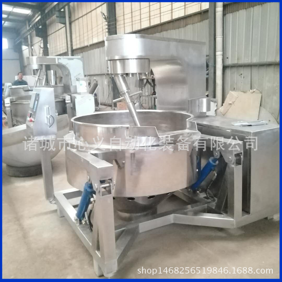 心义自动化装备有限公司生产及研发各种型号的食品级不锈钢夹层锅(简称夹层锅),其系列产品有:蒸汽夹层锅、天燃气夹层锅(灶盘或)、导热油夹层锅、灶盘夹层锅、固定式夹层锅、可倾式夹层锅、变频可调式夹层锅、煮肉夹层锅、炒菜夹层锅、肉夹层锅、搅拌式夹层锅、月饼馅料搅拌专用夹层锅等。可用于煮肉、熬阿胶炒菜、煮饭、熬粥、熬汤、熬糖、炒盐化胶、煮水饺、炒馅料(比如豆沙馅、果酱、莲蓉馅、月饼馅、绿豆馅等),煮笋干,煮卤制品(比如豆腐干、肉制品、花生、毛豆等),卤肉制品(比如鸡爪,鸡翅,卤蛋,鸭爪,鸭脖,猪耳朵、猪皮等),酱油等食品行业,也可用于型餐厅、机关单位、工矿企业、大学院校、酒店、餐厅等熬汤烧菜、炖肉、烧水、煮水饺、熬粥等。