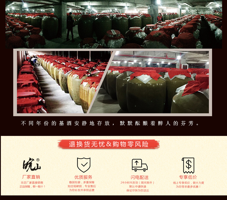 皖山三回头酒是我司经历多年研制打造的一款独特的白酒产品,完全为纯天然白酒,不添加任何酒精、香料添加剂,任何形式的添加都会改变独特风味,具有香味浓郁持久、绵甜爽口、口齿留香、饮后舒适度高,是纯天然的高品质白酒,纯粮手工酿造,五十六度陶罐封藏,味香原生态、醒酒快,绝不上头!