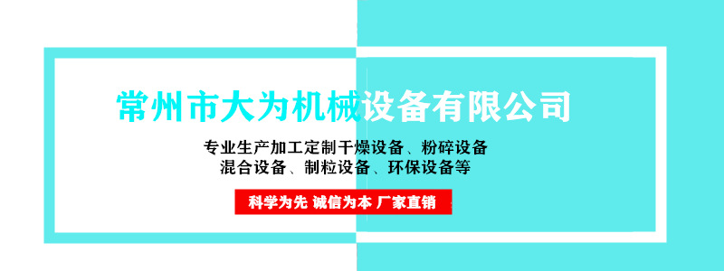 常州市大为机械设备有限公司,是一家专业生产箱式烘干机、带式烘干机、闪蒸干燥机、喷雾干燥设备、真空干燥机、真空回转干燥机、真空耙式干燥机、气流干燥机、三维混合机、二维混合机、锥形双螺杆混料机、V型混合机、槽型混合机、双锥混合机、万能粉碎机等产品并集研发,设计、生产、销售为一体的企业。公司技术力量雄厚,采用CAD设计,拥有现代化大型车间,严格按照现代化企业制度管理。广泛应用于制药、化工、食品、农副等行业......公司依托其天然的技术雄厚资本,在设备制作享有良好的声誉,开创了干燥行业的先河。