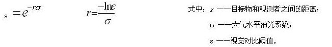 能见度是与人的视觉因素紧密结合在一起的一种复杂的心理-物理现象,表示的是可视距离。根据柯西密德(Koschmieder)定律,对以水平天空为背景的黑体目标物,目标物和背景视亮度对比可以表示为: