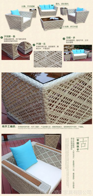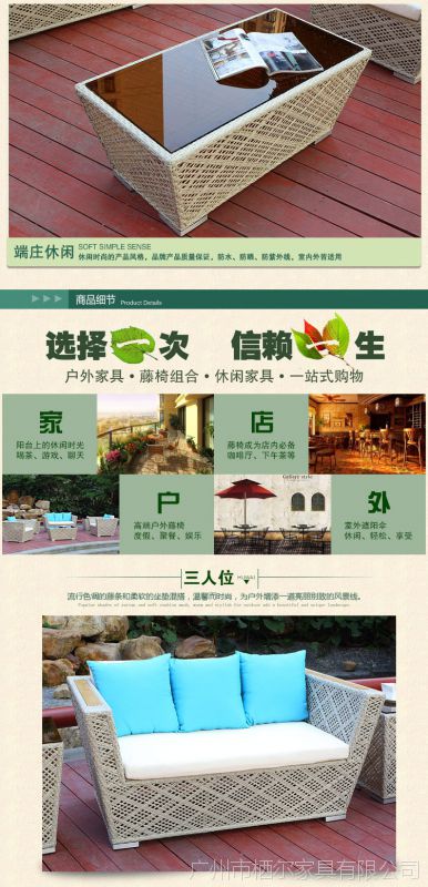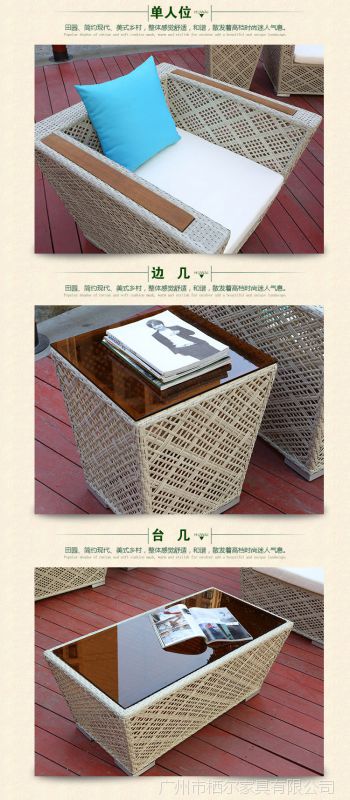 【适用范围】编藤桌椅适用于休闲广场、私家花园、别墅、露天阳台、阳光房、温泉区、茶坐,草坪,酒吧街,商业街,休闲咖啡店、奶茶店,朋友聚会等休闲场所,是您户外休闲、享受生活的理想之选。