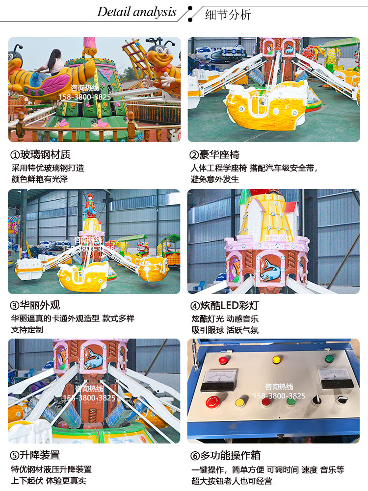 公司主要生产机械类游乐设备包括:观缆车类、滑行车类、架空游览类、陀螺类、飞行塔类、转马类、自控飞机类、小火车类、碰碰车类、观光车类等其中包含(神州飞碟、迪斯科转盘、袋鼠跳、旋转咖啡杯、弯月飘车、迷你穿梭、滑行龙、大章鱼、海盗船、摆锤、星际探险、摇滚排排坐、三维太空环、疯狂骑牛机等众多产品)所有生产产品各项指标均达到国家游乐设备行业制定的质量标准。