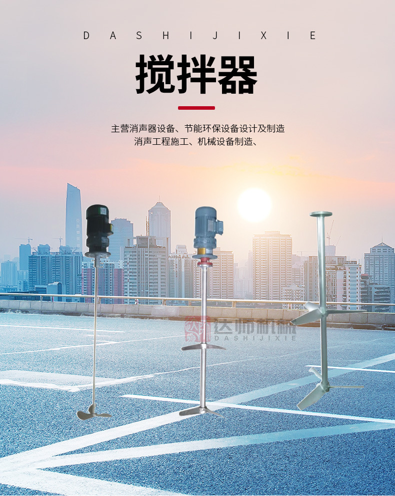 搅拌器是一种使液体、气体介质强迫对流并均匀混合的器件,搅拌器的类型、尺寸及转速,对搅拌功率在总体流动和湍流脉动之间的分配都有影响。对于同一类型的搅拌器来说,在功率消耗相同的条件下,大直径、低转速的搅拌器,功率主要消耗于总体流动,有利于宏观混合。小直径、高转速的搅拌器,功率主要消耗于湍流脉动,有利于微观混合。搅拌机广泛应用环保水处理行业等等对药剂、污水,加药、中和反应,溶解的搅拌场合(PAC,PAM搅拌槽)
