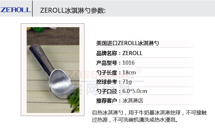 来自始于1935年的美国为你喜欢的冰淇淋,冷冻酸奶和果汁冰糕的Zeroll冰淇淋勺/瓢。相比其它铝勺,本单件铝合金瓢的Zerolon。