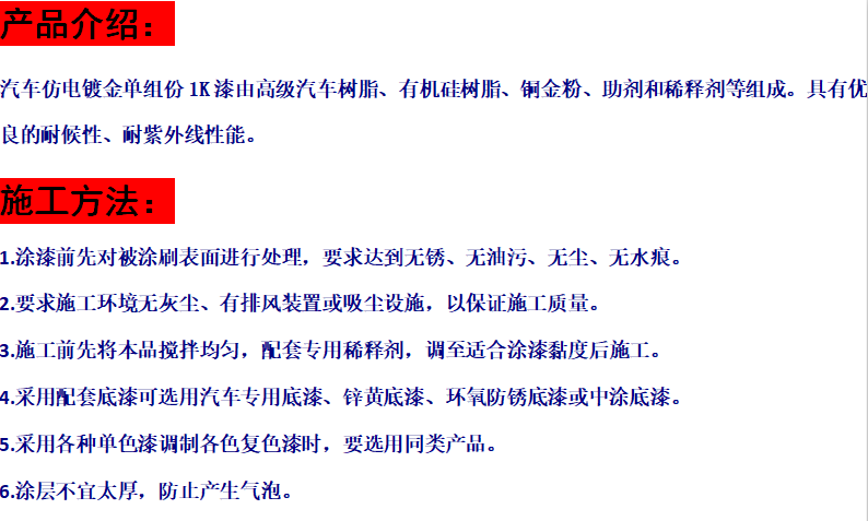 五、油漆属于工业品,在使用中有很多的不可见因数,不清楚的地方可咨询在线客服或联系工厂工程师,谢谢配合!
