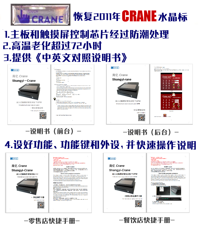 加拿大/美国/日本/墨西哥 英文版 触摸屏 机 CRANE 无需网络