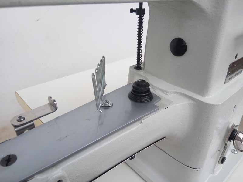 RN-246D小嘴高车【缝纫机】自动供油缝纫机,本机型是小筒型缝台综合送厚料系列的缝纫机,采用垂直双赔旋梭,机器运转噪音低,震动小等。用途,缝制皮包,口袋,鞋,帆布,皮革制品等,合用于缝制管状物,如皮和鞋子,缝制物品的小回转时缝迹平顺,规格,最高缝速;2500r.p.m,最大线迹长度,6mm,正缝倒缝相同,针杆行程38mm,压脚提升量,手动9mm,沏、脚控15mm,使用旋梭是全回转垂直双倍旋梭,使用机针DP*17