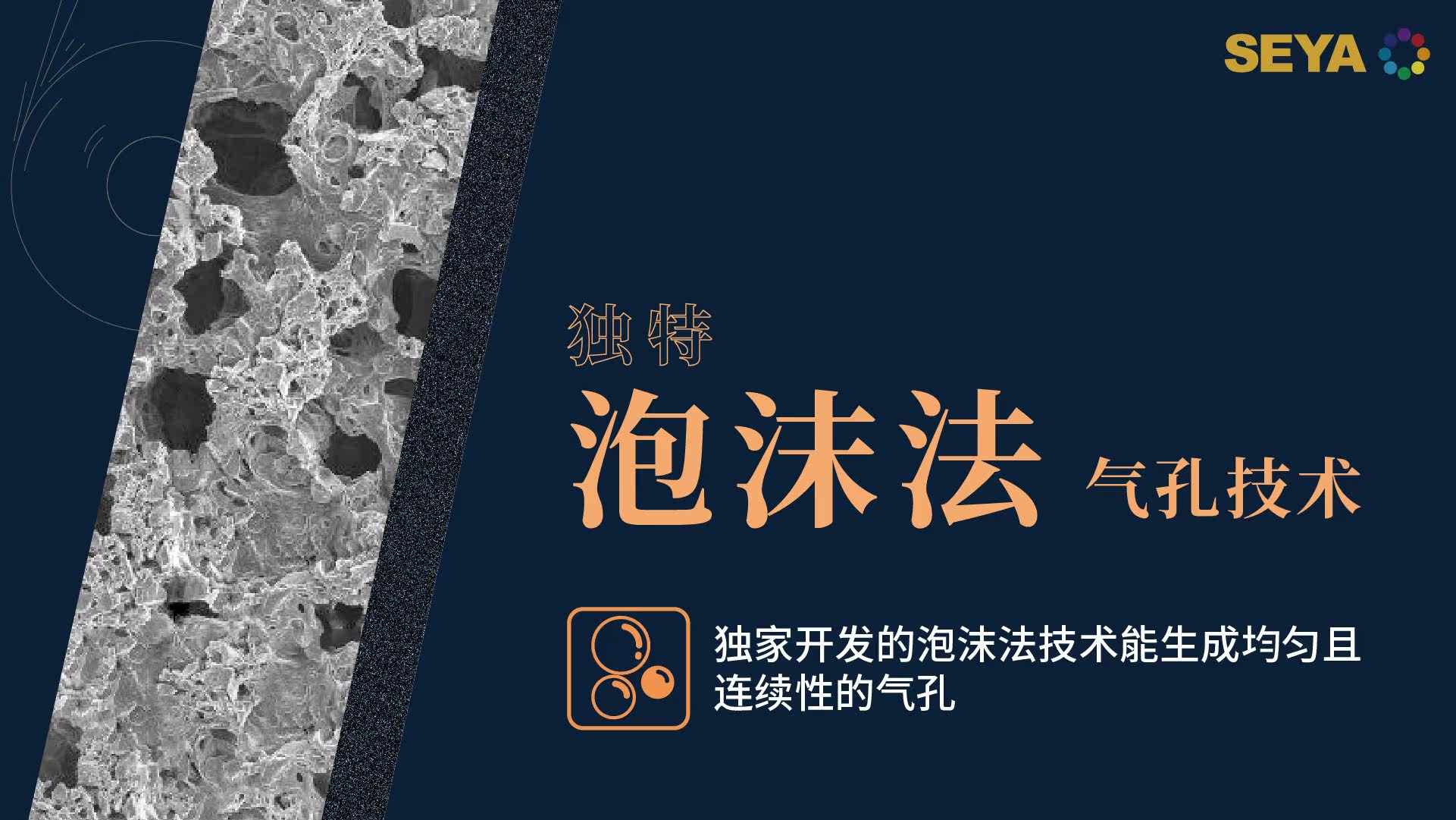 独特开发的泡沫法技术,能生成均匀且连续性的气孔