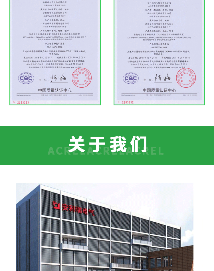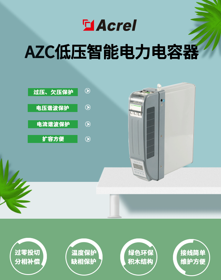 AZC 系列智能电容器是应用于 0.4kV、50Hz 低压配电中用于节省能源、降低线损、提高功率因数和电能质量的新一代无功补偿设备。它由智能测控单元,晶闸管复合开关电路,线路保护单元,两台共补或一台分补低压电力电容器构成。可替代常规由熔丝、 复合开关或机械式接触器、热继电器、低压电力电容器、指示灯等散件在柜内和柜面由导线连接而组成的自动无功补偿装置。具有体积更小,功耗更低,维护方便,使用寿命长,可靠性高的特点,适应现代电网对无功补偿的更高要求。