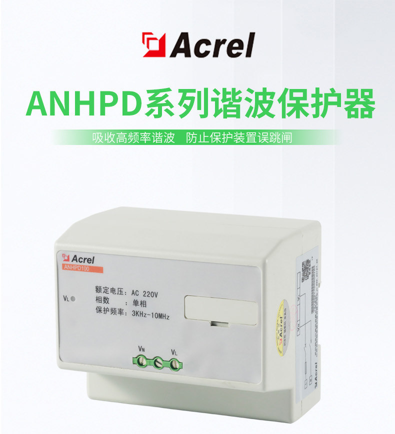 ANHPD 是一种用于滤除高次谐波、保护精密仪器设备的新型保护装置,采用超微晶合金材料与创新的特别电路。它主要由电压箝位、低通滤波器以及吸收器组成,不但可以抑制和吸收用户用电设备产生的随机高次谐波和高频噪声、脉冲尖峰、电涌等干扰,而且能随时跟踪电压波形,瞬时滤除电源中的尖峰、浪涌、杂波,矫正因谐波影响而产生的高次谐波,从源头消除谐波污染,为用电设备提供保护功能。