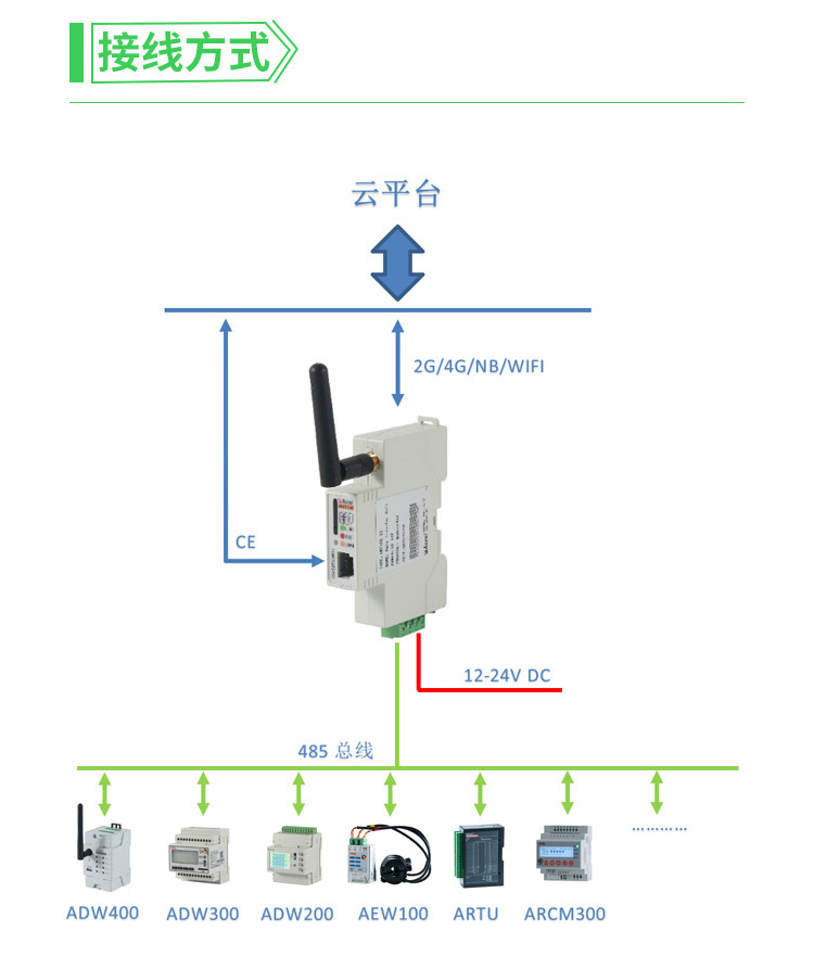 ● 感知层:连接于网络中的各类传感器,包括多功能仪表、预付费电表、多回路仪表、物联网电表、物联网水表、电瓶车充电桩、汽车充电桩、路灯控制器等。