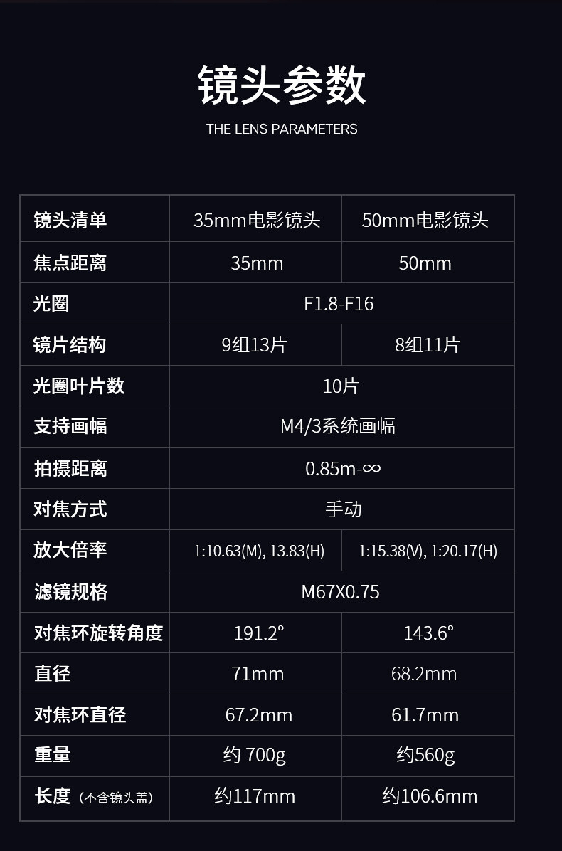 型号35mm电影镜头+50mm电影镜头