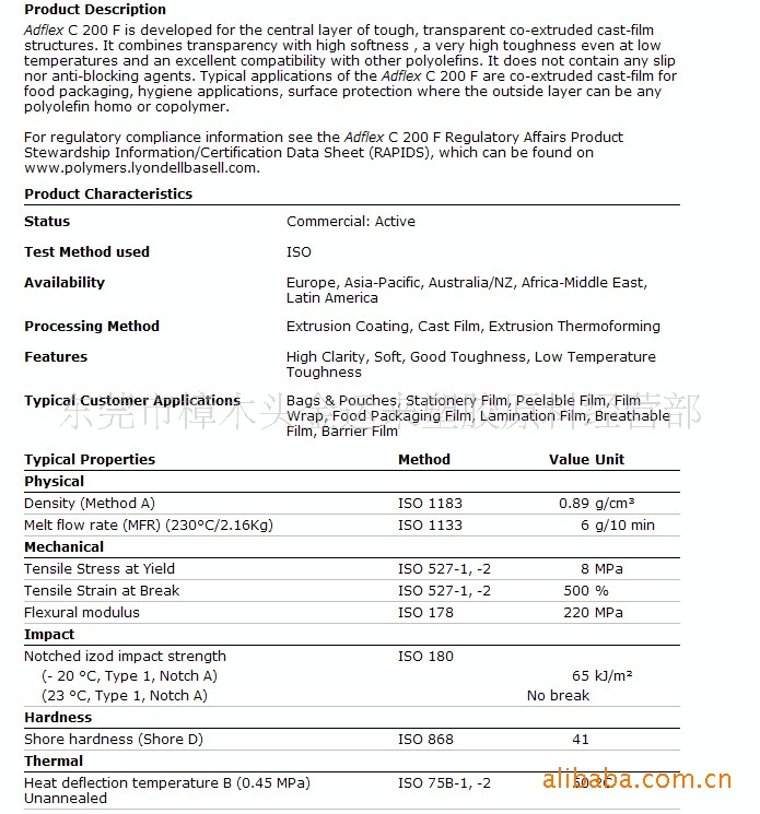 高柔软性、环保、高撕裂强度/耐穿刺、优良的低温性能、食品包装、卫生应用等用途