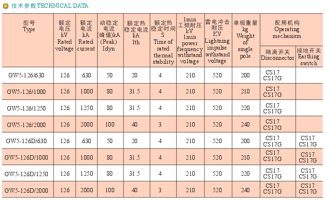GW8-126户外高压隔离开关