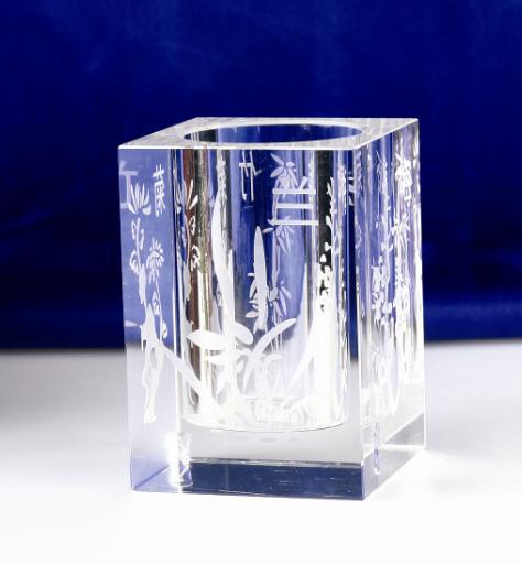 供应一帆风顺水晶笔筒办公礼品、德州商会成立庆典纪念品定做厂家