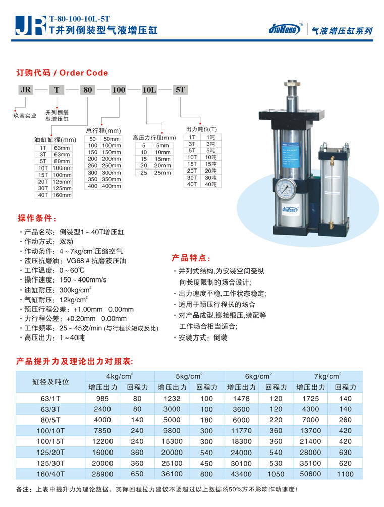 增压缸厂家供应玖容JRT倒装型气液增压缸