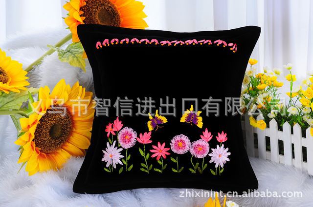 欧锦丝带绣 丝带绣 靠垫 抱枕 套件 蝶飞舞