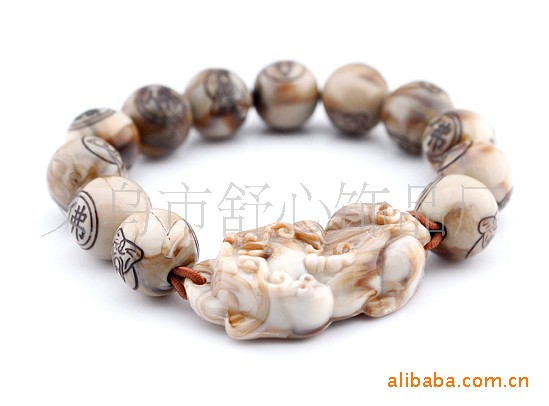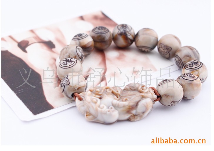 韩版 饰品 批发 呛口小辣椒晶莹白色佛珠麒麟手链B099