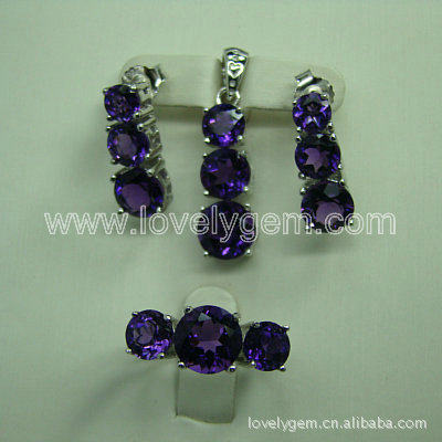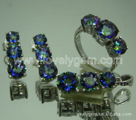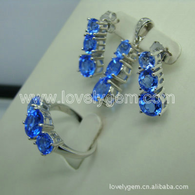 925银镶天然水晶镀彩蓝色首饰套装 欧美风格 欣妍珠宝