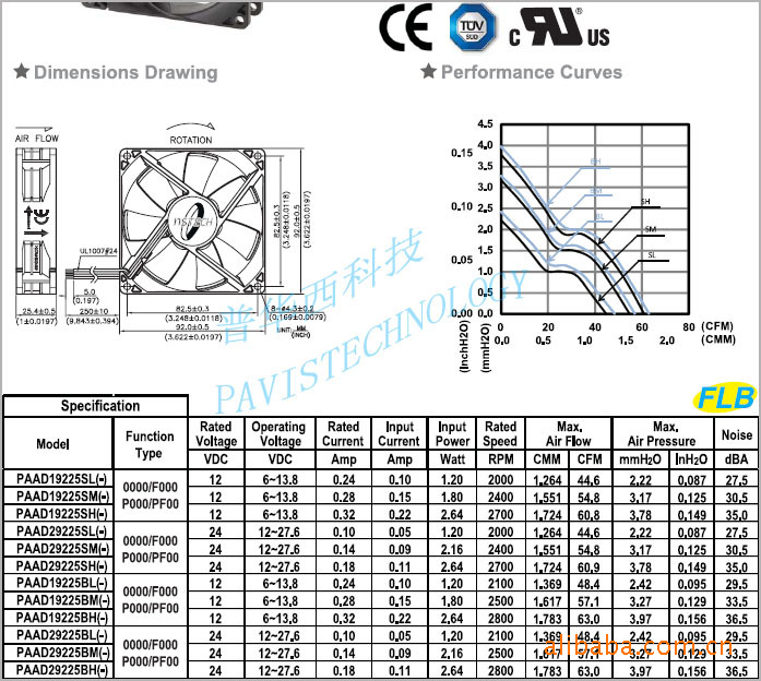 DC12V/24V高风量高风压极静音9225含油FLB轴承散热风扇