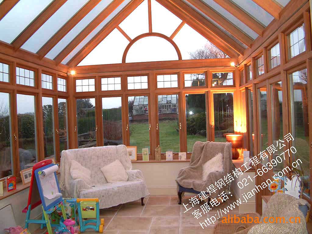 专业搭建的技术、免费三年质保、建焊牌 木质结构阳光房