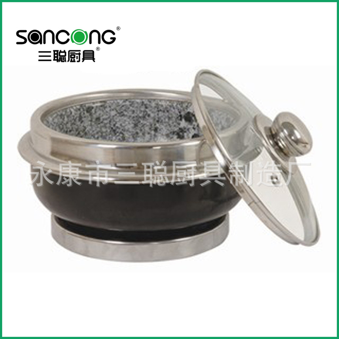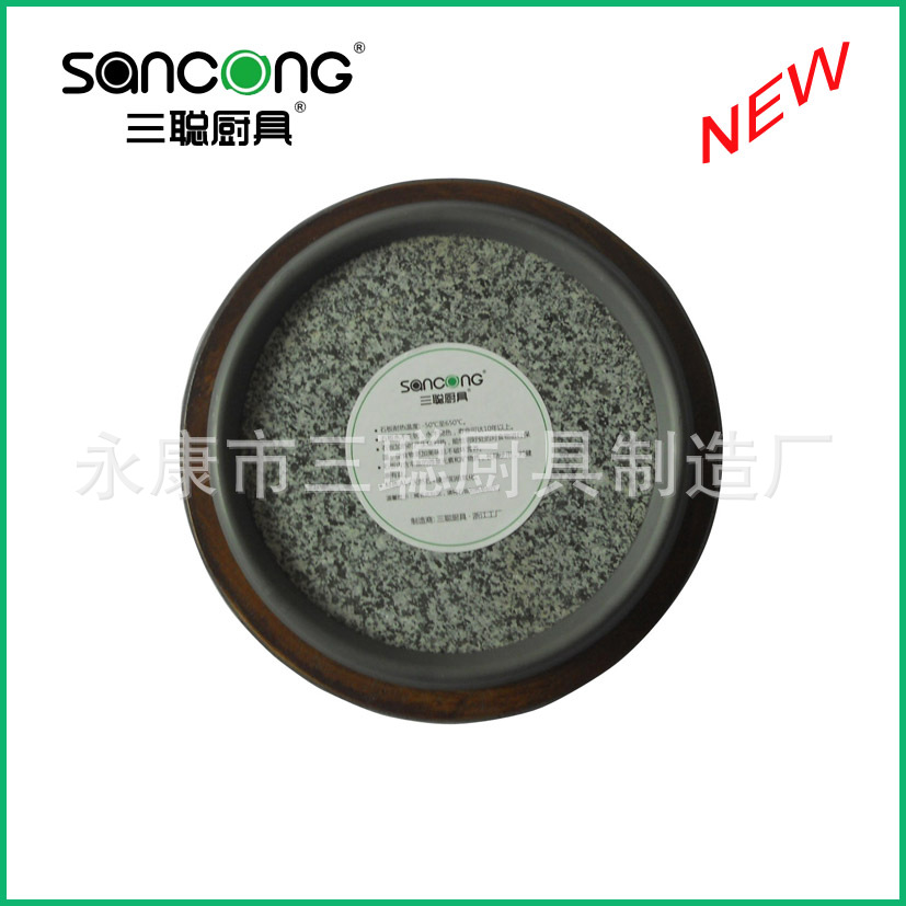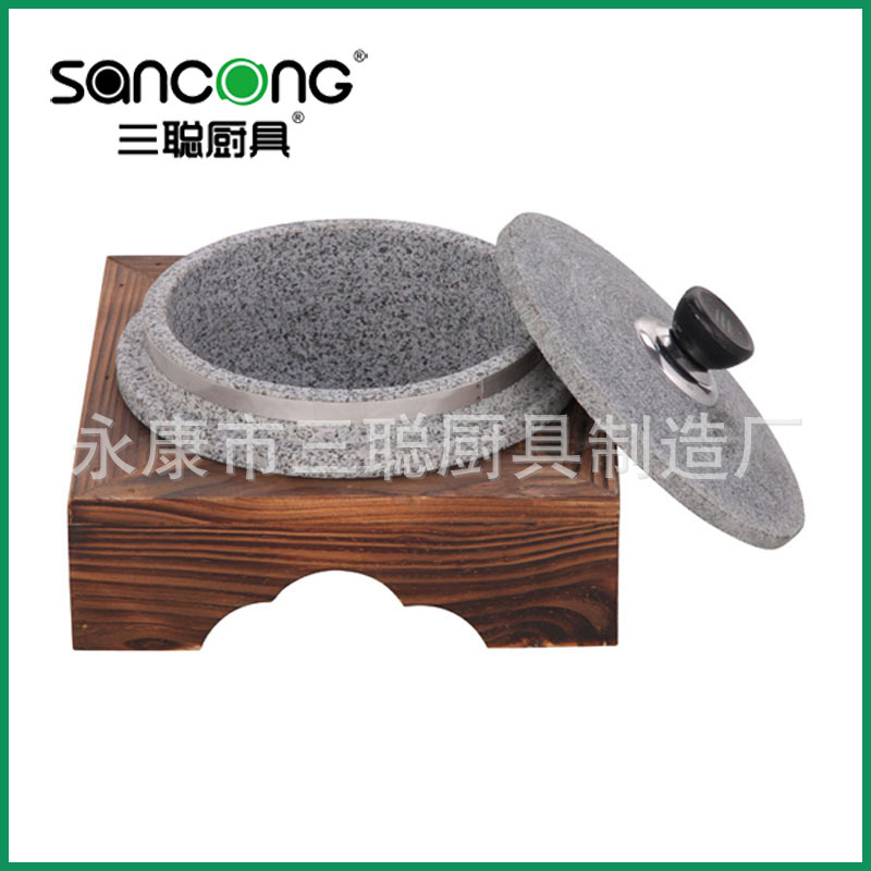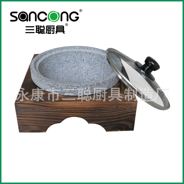 [三聪]石锅配碳化木架 天然石火锅 石锅石碗