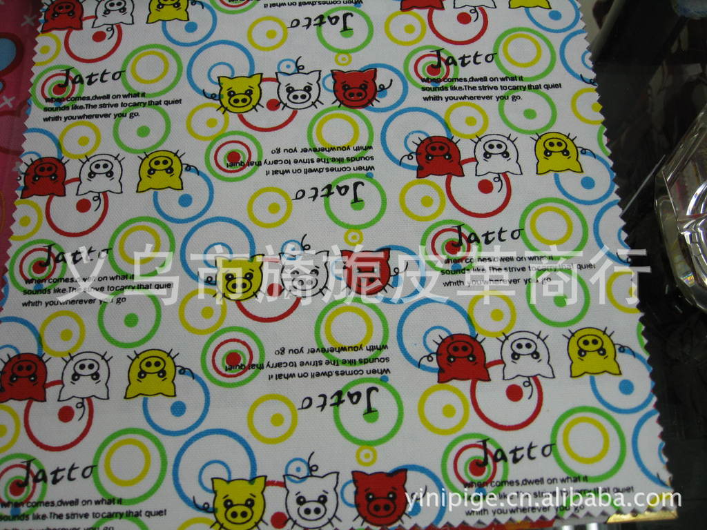 厂家直供 圆圈与黄白红猪全棉印花帆布(100米起)