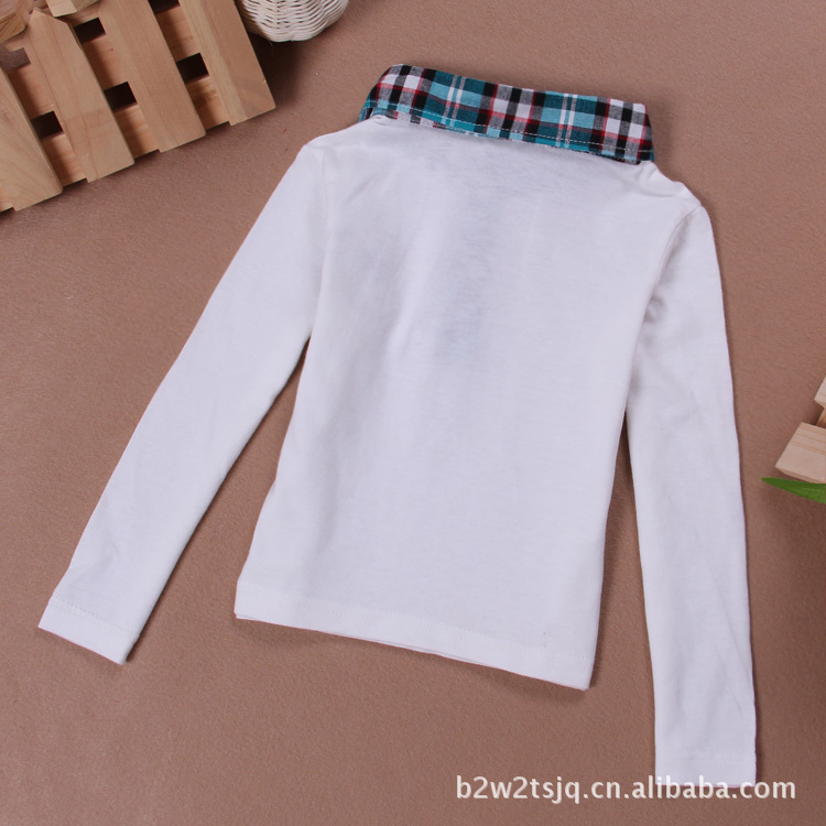 2011韩版 官网同步 帅气 格子翻领 白色 男童 衬衣