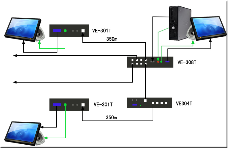 海硕 VGA影音延长器 VE304T/R 4口中继器