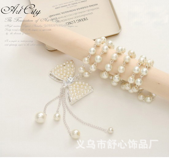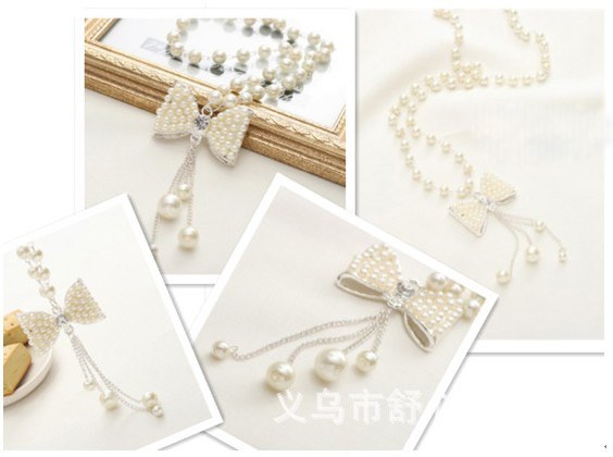饰品小额批发可混批 韩版蝴蝶结珍珠流苏长款毛衣链A140-38
