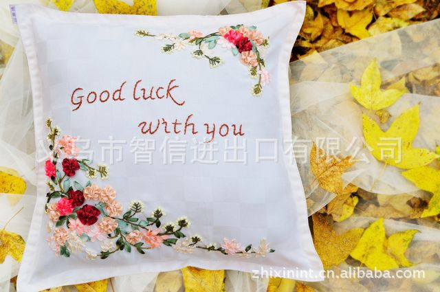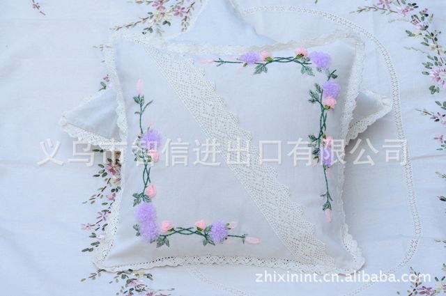 欧锦丝带绣 靠垫 花卉 丝带绣抱枕 套件 蓝色妖姬