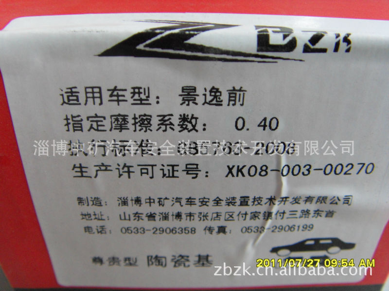 耐磨低噪音景逸前陶瓷刹车片