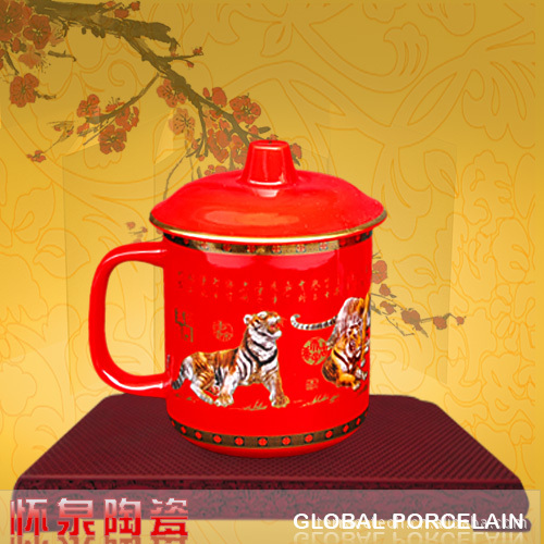 定制生日回礼寿碗 景德镇红黄万岁寿碗套装定做