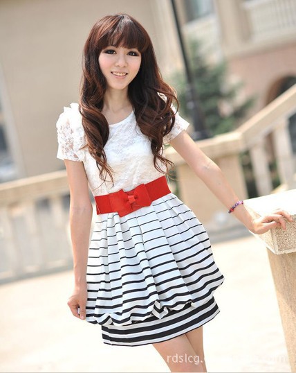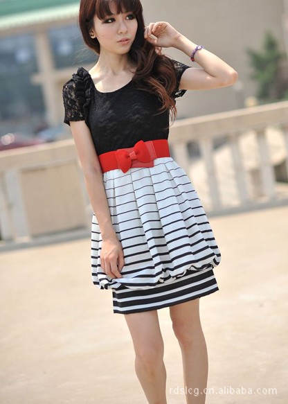 2011 新款 韩版时尚公主蝴蝶结 蕾丝连衣裙A521