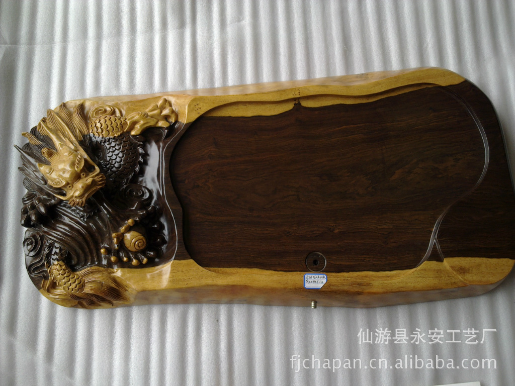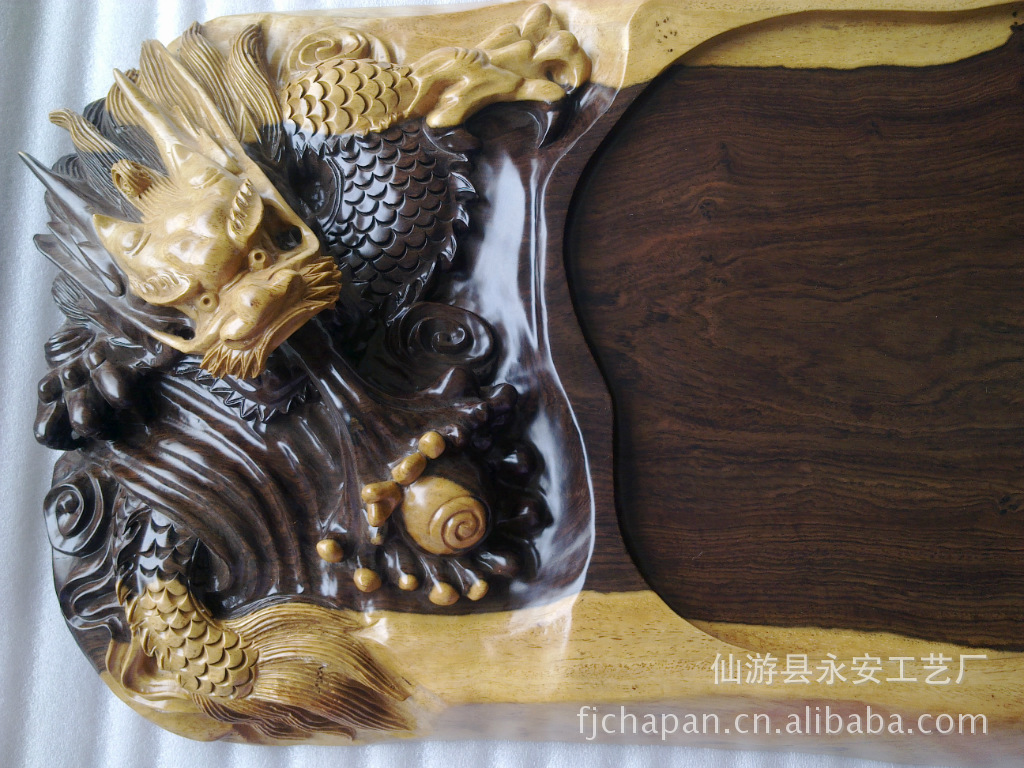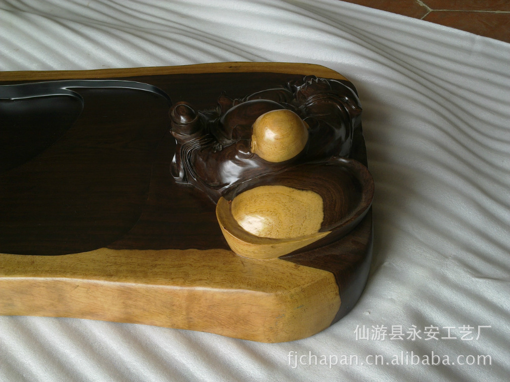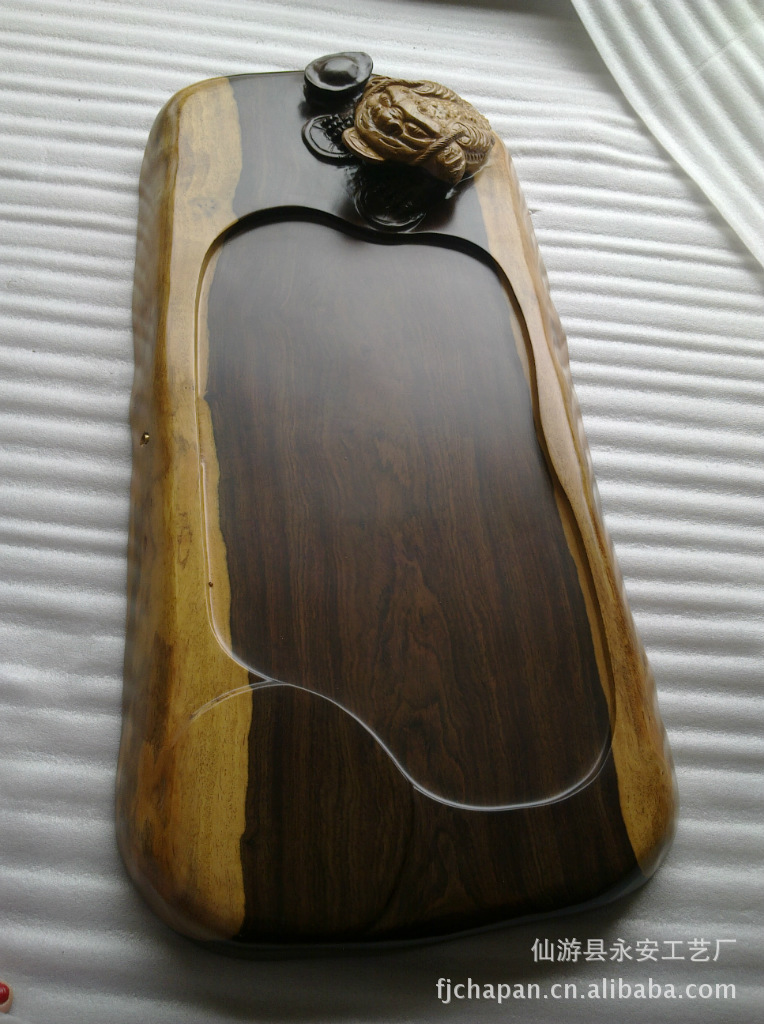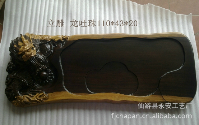 厂家茶盘直销,采用进口黑檀实木纯手工制作。立雕茶盘