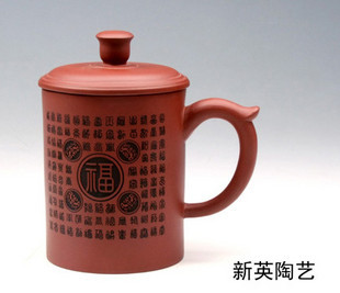 新英 陶艺*宜兴紫砂茶壶*原矿紫砂泥刻字百富杯特价