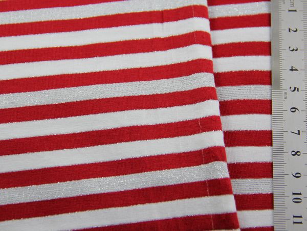 [现货]枚红,白色银线相间 0.5cm 纯棉拉架间条横间布004-005#